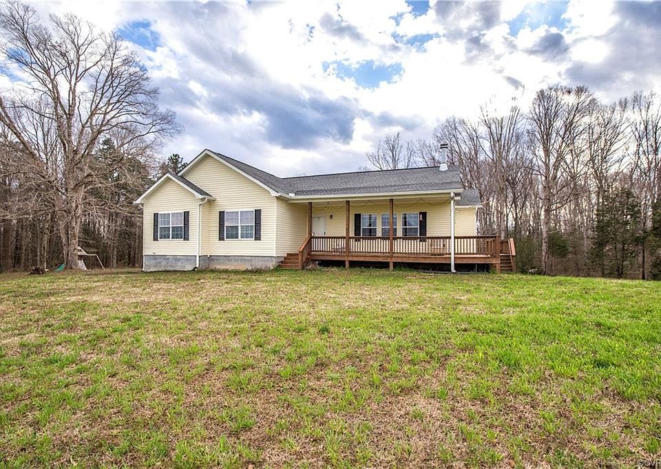 Move In Ready Rancher with Country Views on over 5 Acres!!! Less than 5 Minutes from Fort Pickett! This Open Concept 3 Bedroom, 2 1/2 Bath Home with 9 ft Ceilings has Lots to Offer. Home has NEW CARPET throughout! The Eat In Kitchen features a Large Island, Pantry and Refrigerator that Conveys to New Owners. The Living Room Opens to the Kitchen and has a Wood Burning Stone Fireplace. Off the the Living Space is a Half Bath and Down the Hall are 3 Spacious Bedrooms including the Master Bedroom. The Master Bedroom has a Very Large Walk In Closet, En Suite Master Bath with Double Vanity and Soaking Tub. There is also a Desk Nook Area that it situated in the Hallway. The Laundry Room/Mud Room has a Washer/Dryer that will Convey to the New Owners. Outdoors there is a Very Large Deck that Surrounds most of the House! Also there is a Unfinished Basement with Equal Square Footage of the Home. This Area would be Great as a Man Cave or to be Used for Extra Storage Space! Very Secluded Lot with Views that will not Disappoint!!!