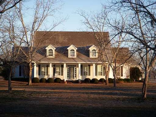 Great 5 bedroom/3.5 bath home on 3.43 acres! Quiet setting close to town. 3 living areas - formal LR, GR w/ fireplace & built-ins, and sunroom. Located conveniently downstairs is 1 BR + Master suite w/ large walk-in tiled shower, Jacuzzi, double vanities and private deck. Spacious bedrooms & walk-in closets! Extra room could be hobby room/office/computer room. Granite countertops & Stainless Steel appl. Double carport + single garage that could be workshop. 50+ pecan trees that are income producing. Concrete siding installed in 2006. Heating/AC has been replaced. Aerator on well. 1 yr. home warranty ($375).