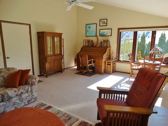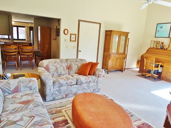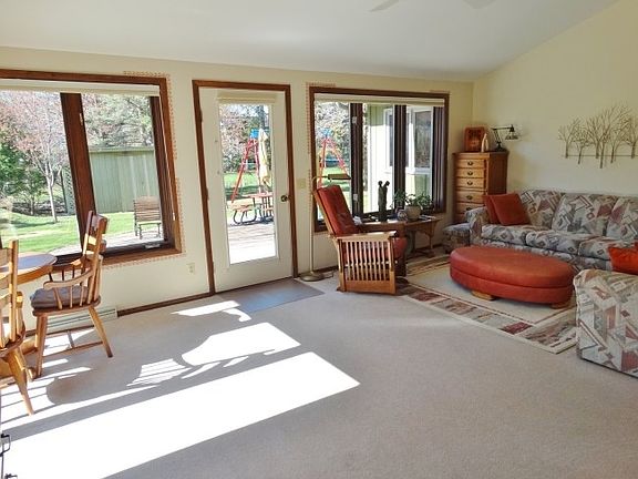 5 bedroom, 2.5 bath home has open concept floorplan. Vaulted ceilings. Kitchen with dining counter and updated appliances. 2 way gas fireplace. 1st floor family room with access to deck & brick patio. Lower level family room, bath, 2 bedrooms, & den and 3 egress windows with tiered window wells. Fully fenced backyard with shade garden. Fido will love his own house door and special fenced in doggie park area. UHP Home Warranty included. Highly coveted Eastside location!