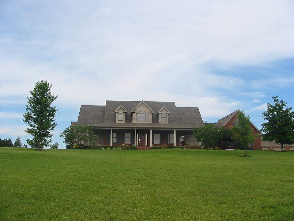 4 BD, 3 BA home on 5 acres close to Bluegrass Parkway. Featuring a large great room with cathedral ceiling, gas fireplace and built-ins. First floor Master bedroom with trey ceiling and large bath. Large eat in kitchen with custom cabinets, formal dining room, two story entrance, large utility room w/custom cabinets, bonus room, lots of crown molding, 3 walk-in closets, covered front and back porches, pond with deck, 3 bay detached garage 36 x 40. Beautifully landscaped and well maintained.