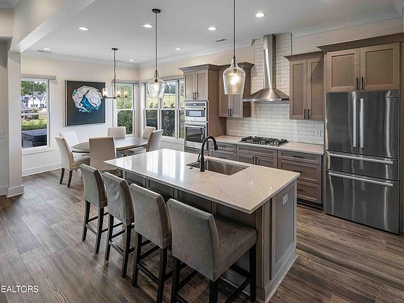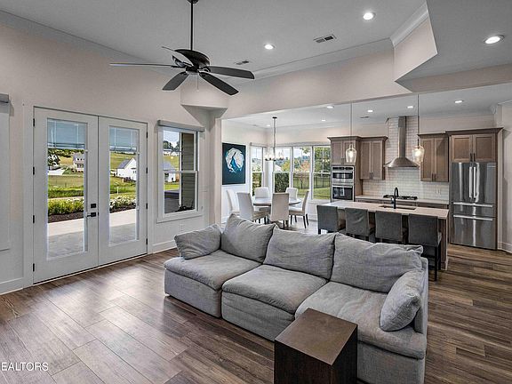 BETTER THAN NEW! Take action now and call us, as this exceptional Tennessee National golf course home is ready to move in! This home has unobstructed sunset views on hole #14 of Greg Norman's signature designed championship course. One of the very best in TN. The front porch offers sunrise views over hole #10 and full view of all three of the communities iconic silos. The location provides plenty of space and light and better visibility of the entire community than most. The open concept floor plan and soaring ceilings with plenty of windows provides for a spacious uplifting feeling. There is large island & chef's kitchen which are ideal for entertaining guests. The beautiful ground level primary bedroom with custom shower has a huge walk in closet with built-ins. There is endless closet space through-out the home and an entertainment room/office & guest bedrooms on the 2nd level. Custom blinds, epoxy garage floor and built-ins throughout are all extra added features along with professional landscaping. Few are so well appointed! Please call with any questions about the home or community or to schedule a private viewing or video tour.