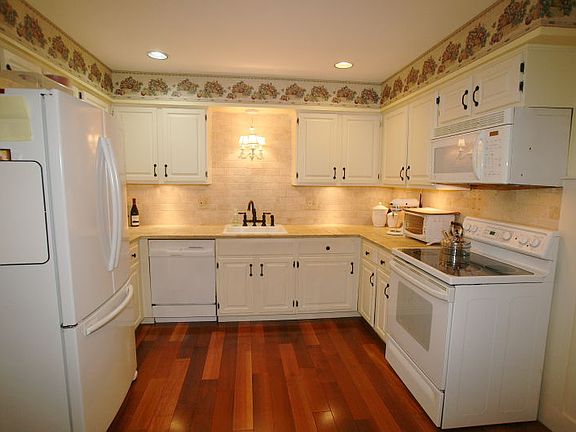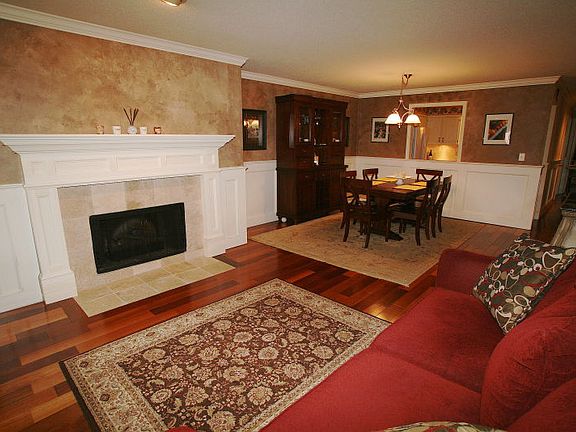 Tucked away in a private setting is this sprawling end unit ranch style condo. Home features many custom upgrades, including Brazilian cherry hardwood floors thru-out & crown moldings. Fully applianced kitchen w/stone counter tops & back splash, with easy access to garage. Open LR & DR with a fireplace, great for entertaining. Master bedroom w/full bath, ample closets and slider to covered deck. Two additional bedrooms w/custom trim work. Efficient newer gas furnace, hot water heater, air conditioner and windows 2007. Basement is ready to be finished. Walk to pool and clubhouse. Main floor laundry.