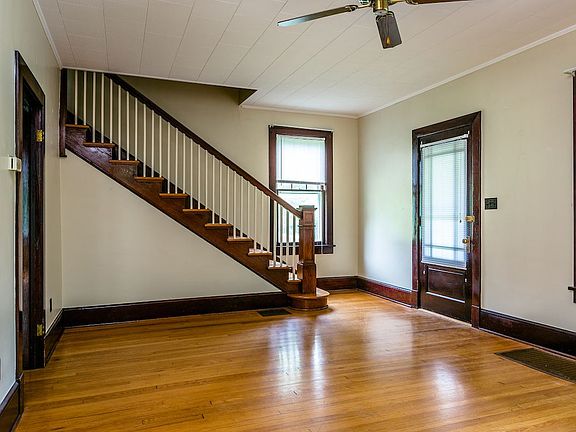 Cute farm house located on 1.78 acres with hardwood floors throughout the home. A wood burning fireplace in the main living area and a separate dining room as well as space for a table in the kitchen. Downstairs features a large room (4th bedroom), half bath, living area, dining room, and kitchen with separate pantry. Two staircases. Unfinished basement.