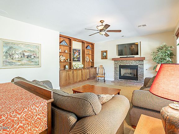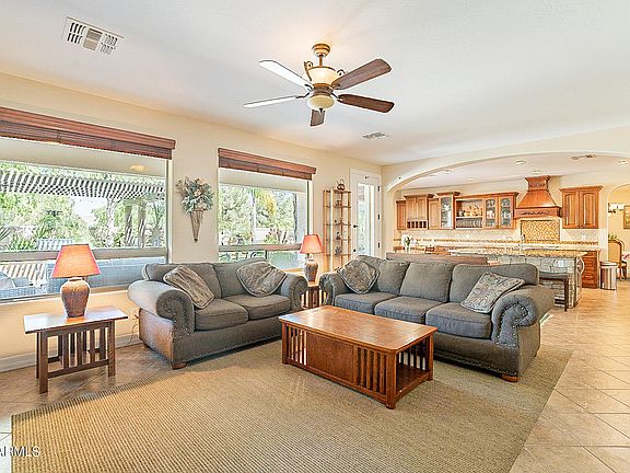 Former model home gorgeous and loaded with upgrades. Spacious floor plan with 2 story living room, family room with gas fireplace, large bonus room with wet bar upstairs. Enjoy the beautiful kitchen with oversized island, breakfast bar, granite counters, cherry cabinetry, 5 burner gas cooktop, warming drawer, sub zero refrigerator, wine cooler, and walk in pantry. The backyard feels like you are at a resort with salt water pool with waterfall, tropical landscaping, artificial turf, paver decking, built in BBQ island with counter seating and fire pit. There is a pergola and a covered patio. There are no neighbors behind you.