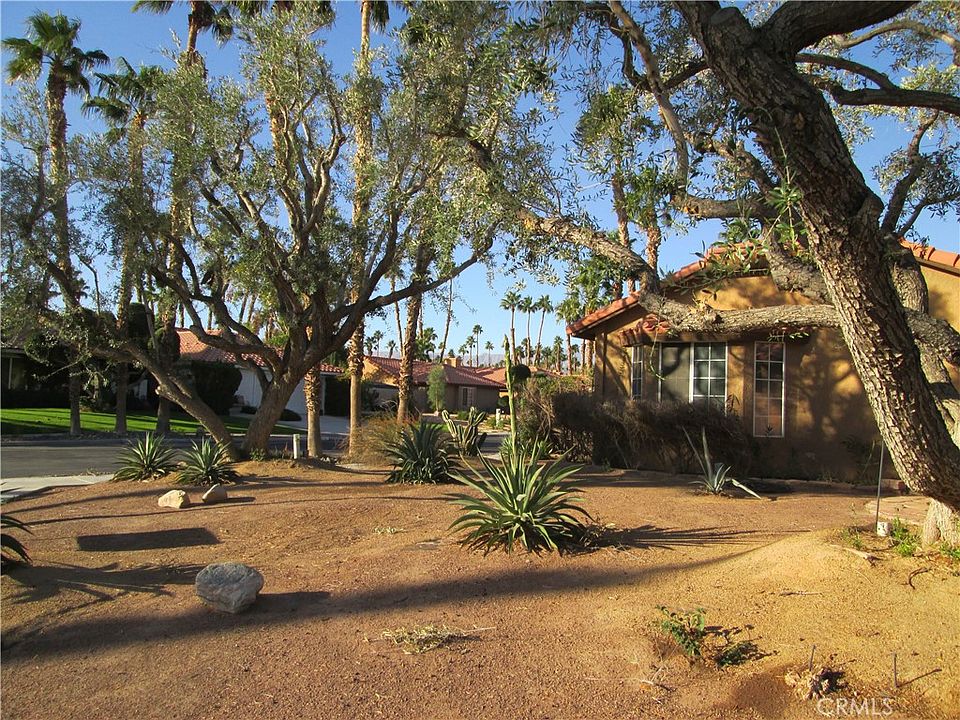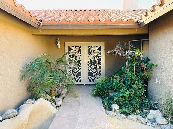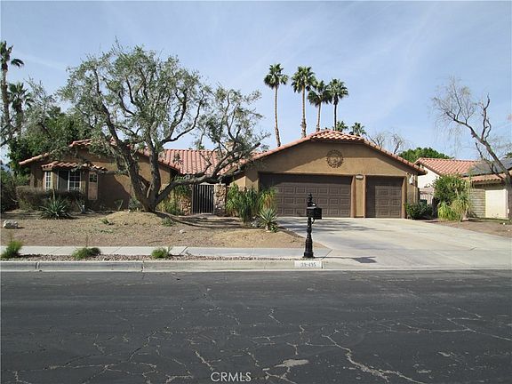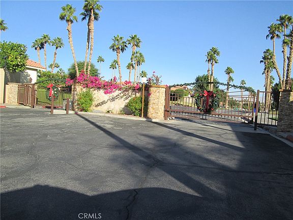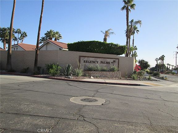 A gated, rarely on the market property in the Regency Palms community. Single level with some mountain views. Waterfalls and in ground, gunite plastered pool. Huge wood covered concrete patio. Pool faces west for afternoon enjoyment. An additional office/room was added by a previous owner that may increase the posted square footage. Lots of Olive trees and other fauna. A large two car garage with a golf cart garage that could be another room. Concrete driveway could facilitate three more cars on this large over 1/4 acre corner lot.!