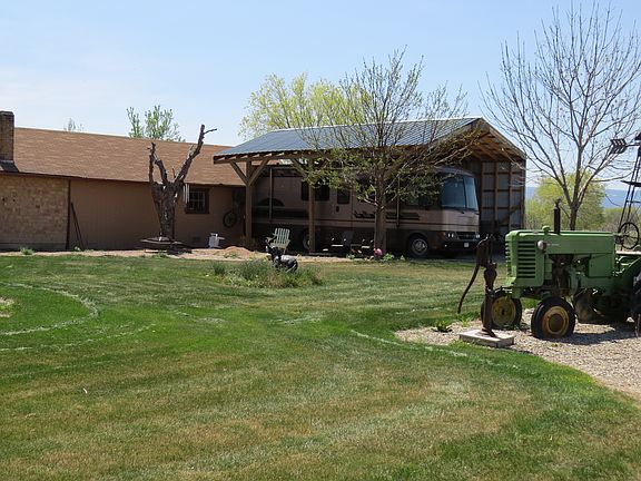 garage, 2 stall covered RV parking plus dump, mature landscaping, sprinklers,corral, screened in porch
