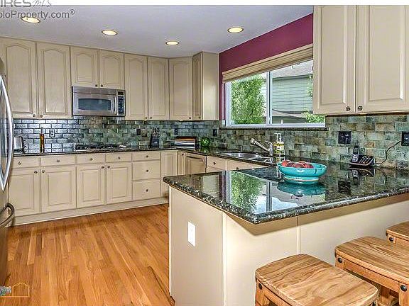 Beautifully upgraded home backing to Open Space. Large lot on low-traffic cul-de-sac. Newer roof, west side windows, exterior paint. Kitchen has granite counters and stainless appliances. Four bedrooms upstairs with additional daylight basement bedroom. Fully finished walk out has spacious office with custom built-ins - could be 6th bedroom. Basement wet bar with full sized appliances. Hardwood flooring through main level, designer window coverings and tastefully decorated throughout.
