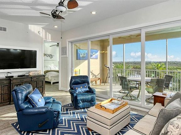 Beautiful Penthouse Condo in a gated community at Marina Walk and one Particular Harbour with Sunrise and Sunset views! This private island and condo awaits you! The location is only 1 mile from the powdered sand beaches of Anna Maria Island. This is great as a full time home, a 2nd home, a vacation rental or all of the above. This beautiful condo is the Oceana floor plan with 3 bedrooms, 3 baths and enclosed large lanai with with amazing views (no other building next to this side) of the lake, partial views of the inter coastal water way and the marina. Included are 2 parking spaces with a storage unit and covered parking. The home features a gourmet kitchen with upgraded stone counter tops and appliances, 10 feet ceilings and 8 foot solid wood doors throughout, porcelain tile, built in TV cabinet and window trims, window treatments and ceiling fans with lights. Designer quality furnishings focused on Island living create an incredible turn key home so you can move in immediately. Steps away you can enjoy the saltwater heated pool, splash zone and barbecue grills. Just a short walk from the home is the Marina where you can store your boat or enjoy the Freedom Boat Club! Harbour Isle features award winning amenities including a Waterfront Beach Club an amazing Private Clubhouse right on the Anna Marina sound with breathtaking views, a 4200 sq. ft. fitness center, a resort style heated pool and spa, Cabana Bar, Sky bar and restaurant, kayaking, nature trails and tons of activities to enjoy. Come and enjoy this private island where everyday feels like a vacation!