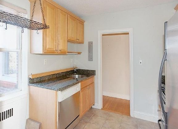 This large one bedroom apartment is located in Mid-Cambridge and is a short distance to both Harvard and Central Square T stops. This apartment features a renovated kitchen with granite counters, stainless steel appliances, and beautiful cabinets. There is a formal dining room, a sizable entry foyer, and a spacious living room. The bedroom is good sized and has two closets. There are windows on three different walls which allow good cross breezes. Parking is available for an additional $90 per month.