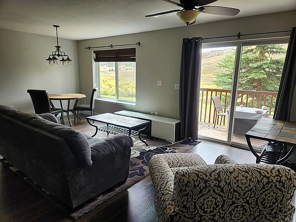 Recently updated 2 bedroom, 2 bathroom for sale in Soda Creek Condos. Corner unit on the ground level, includes two parking passes. Open living/dining/kitchen area with updated appliances, pantry, and stacked washer/dryer. In-floor heat! It has a private deck with fire pit off the back of the living space that looks out over Lake Dillon. There is also a small storage unit available for gear. HOA covers water, sewer, trash, HEAT, snow removal, and building maintenance. Walking distance to the bike path and a free Summit Stage bus stop, as well as a local pub, pizza shop, liquor store, and coffee shop. Only 3 miles to Keystone and 4 miles to Dillon.