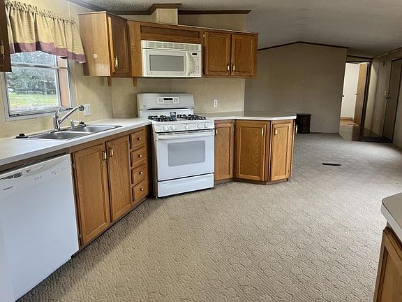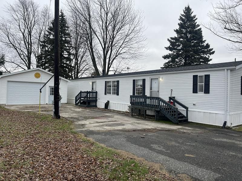 On this beautiful piece of property sits a nice 2 bedroom, 1.5 bath home in great condition. The master bedroom features a spacious walk in closet and en-suite, and the open concept of the kitchen and living room gives it a spacious feel. The property comes fully equipped with Appliances including the washer and dryer, there is a brand new hot water heater, and central air. The door wall leading to the pond in the living room offers a serene view that could be fun for swimming, fishing, or just relaxing. The impressive 4 car garage is a versatile space equipped with heat, bathroom, sink, oven, refrigerator, and hot water heater The 2 over head doors on each end provide easy access and a door wall leading out to the patio area overlooking the pond makes this garage ideal for entertaining or working on projects. This property is completely fenced in and the trees and the pond give it a park like atmosphere! Call for your private showing today The Price is Right on this one!