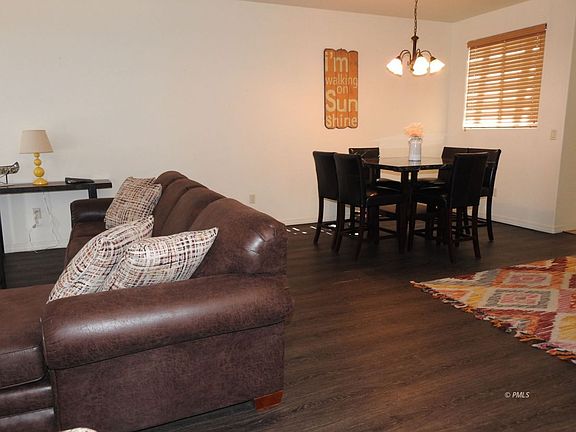 This is a wonderful 2-bedroom townhome with the main living area, dining room and kitchen located on the main floor of the home near the front entry. The floor plan is open and inviting for friends and family to gather. The living room picture window is stunning with views of Lake Powell and the mountains. There is also a balcony off the main living area with a table and chairs to enjoy the view. There are two bedrooms downstairs, both en-suite, and both with sliding doors to the backyard patio area which features a barbecue grill and patio chairs. The HOA allows Vacation rentals, 2 night minimum stay only. Built in 2008 and renovated in 2019. Furniture is available for sale under separate agreement.