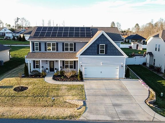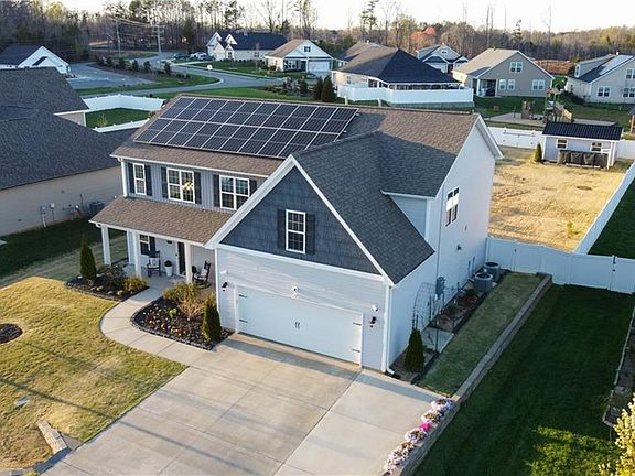 Looking for minimal power bills? Look no further than this 5 bedroom entertainer's dream home with fully paid, off-grid capable solar system and battery bank! When others lose power, switch to battery backup and relax. Completely open, gorgeous chef's kitchen/dining/great room with massive quartz peninsula, 36" gas range and fireplace. Private office with french doors, ample drop zone, and guest bedroom with full bath on main with continuous LVP flooring.Two-story front entry; rich with natural light throughout! Upstairs laundry with roomy folding station.Luxurious upstairs Primary with en-suite bath. All bedrooms boast walk-in closets. Double sinks with separate shower/tub combo serve occupants of the 3 additional bedrooms down the hall. Fresh easy clean paint throughout! Private fenced in backyard with raised garden planters for gardening. Nice 12x20 storage building with metal roof. Relax and enjoy the fire pit in the backyard. This won't last long. Call to book a showing today!