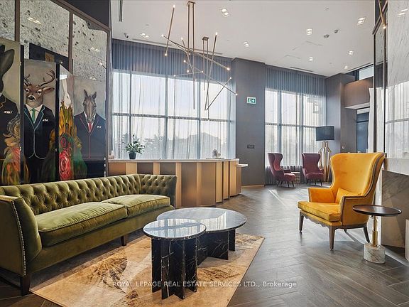 Experience contemporary luxury at Distrikt 2 Trailside, a sophisticated North Oakville's coveted Dundas and Neyagawa area. This 770 sq. ft. corner unit, features 2 bedrooms and 2 bathrooms with soaring 11-foot ceilings, filling the space with natural light through expansive windows. Step out onto the oversized balcony, ideal for entertaining or relaxation.The sleek, modern kitchen boasts Italian cabinetry, premium built-in appliances, and a custom quartz center island with ample storage. Designed with convenience in mind, the open-concept layout flows effortlessly, complemented by high-quality wood laminate flooring. Enjoy easy access to Fortinos, banks, shops, and Rio Centre Shopping Mall, with nearby green spaces like Harman Gate Park, Neyagawa Park, and Old Oak Park. This upscale residence includes underground parking, a storage locker, 24-hour concierge, a fully-equipped fitness center, and a rooftop patio complete with comfortable seating and BBQs. With its high walk score and prime location, Distrikt 2 Trailside offers a perfect blend of luxury and lifestyle. Some photos have been virtually staged.