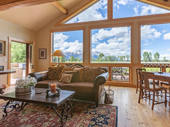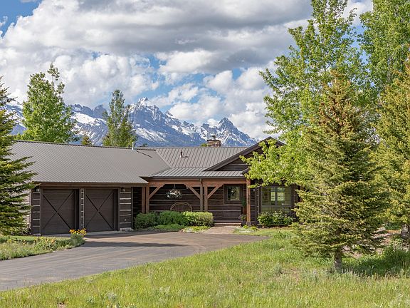 Lucky are those who can live life at the base of Tetons and wake up everyday basking in her majestic and powerful energy. Feel the positive synergy as you walk in the front entry, and the massive Tetons greet you. This home is located on one of the best view lots in all of Bar B Bar and overlooks a 147-acre wildlife migration corridor. There are hundreds of animals that walk past your porch every season. It's truly an artist's dream! The home is all one level and boasts over 3,200 sq. feet with vaulted ceilings, cherry wood cabinets, and a beautiful master suite that fully enhances the views. Second master on the other end of home, large mud room, office, outdoor grille, wonderful landscaping are a few of the extras. Beautiful home located on a fabulous lot - this is one not to be missed