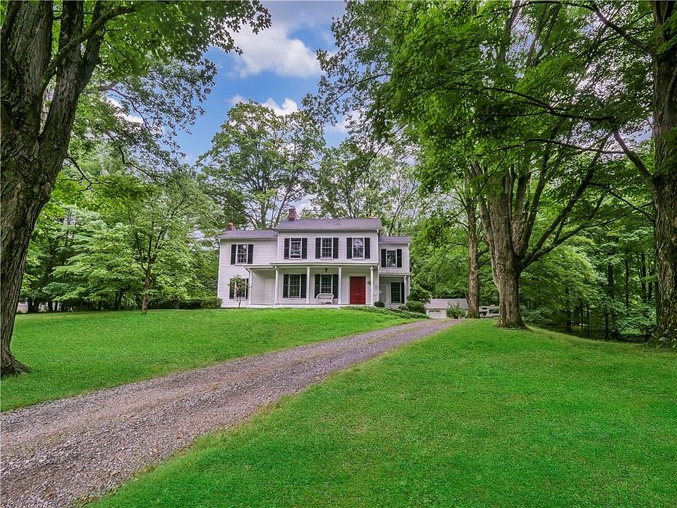 Beautifully maintained 1830 Colonial on 1.77 acres. Home features open concept kitchen addition with cathedral ceiling, stainless steel appliances island seating & breakfast nook open to Great Room with a wood burning fireplace. Library has fireplace, knotty pine paneling, built in shelving & desk. First floor full bath. Formal Living Room has high ceilings, crown moulding, wide planked floors, fireplace, double door entry to front porch. Formal Dining Room has crown moulding, door to side porch and hardwood floors. The original kitchen now is the oversized pantry, coat closet & laundry room. The upstairs landing is perfect for a small desk or sitting area. Primary Bedroom wide plank floors, beadboard ceiling. Full Bath with mosaic tile floor, vanity with bowl sink and oversized linen closet. Bedroom 2 has wood plank floors, ceiling fan, crown moulding. Bedroom 3 has built in cabinets/desk. Basement with work room. 3 Car Garage with attic storage. Home Warranty Included!! Additional Information: Amenities:Storage,ParkingFeatures:3 Car Detached,