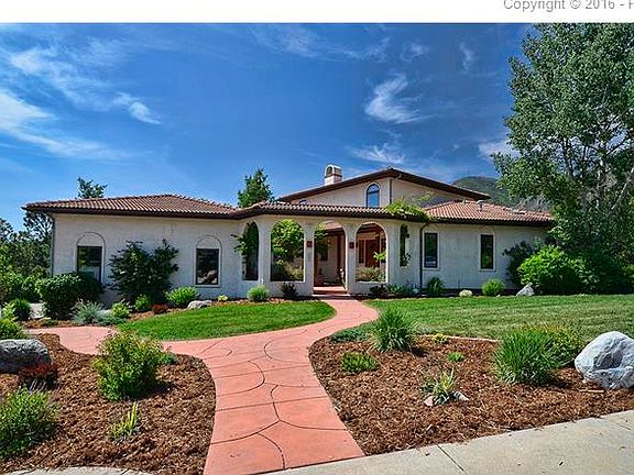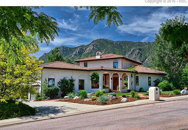 Wonderful Custom Home with Sensational Views! This 5 bedroom + study, 4 bath home includes absolutely gorgeous views of Cheyenne Mountain as well as a 4-car garage. The main level features a great room with wood burning fireplace which opens into the gourmet kitchen. The kitchen offers cherry cabinets, granite countertops, island, breakfast area and a walkout to the deck. Also on the main level, you will find the separate dining room with built-in buffet, master suite with a balcony, 5-piece bath and easy access to the study with built-ins and gas fireplace. The spacious laundry room is also found on the main level with counter space, cabinets, sink and windows with a view. This home also offers an upper level with 2 bedrooms and full bath as well as a walkout lower level. The lower level includes a family room with wood stove, bonus room for a second office, 2 possibly 3 additional bedrooms, full bath and a workshop. The outdoor spaces include a front courtyard, decks off the upper and main levels, covered balcony off master and dining room, and a patio off the lower level. The grounds are beautifully landscaped and the property backs to Palmer Land Trust providing fabulous views. It is also close to Broadmoor Valley Park, hiking, Broadmoor Elementary and the Country Club of Colorado.