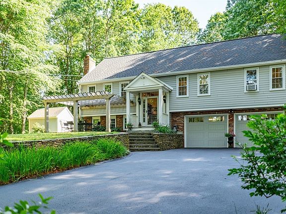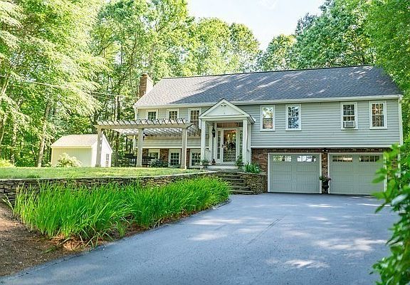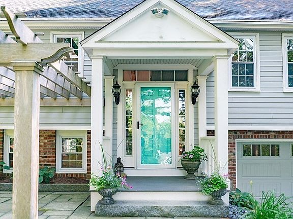 Experience this special, lush, shaded property in an iconic neighborhood in N Marshfield. Approach on a long driveway to view a hardscaped blue stone front terrace enhanced by a Spanish cedar pergola, surrounded by rock walls. Step inside to experience a wide-open floor plan with the fire placed living room and an open kitchen with white custom cabinets that soar to a beamed, cathedral ceiling and south facing skylights. The semi-circle, quartz island is the heart of the home with SS appliances and pendant lighting. Wide pine floors flow thru-out the living room and 3 bedrooms. Second floor bonus room has a full bath, jacuzzi tub, 4 walk in closets and a triple window to observe the changing seasons. The LL media room has 92" HD home theater, surround sound, wood burning insert fireplace. French patio doors open to 21' x 16' Azec deck off the kitchen to overlook a serene back yard, stonewalls, gardener's shed, abuts cons. land for added privacy. 2 car garage w/ smart-home door openers.