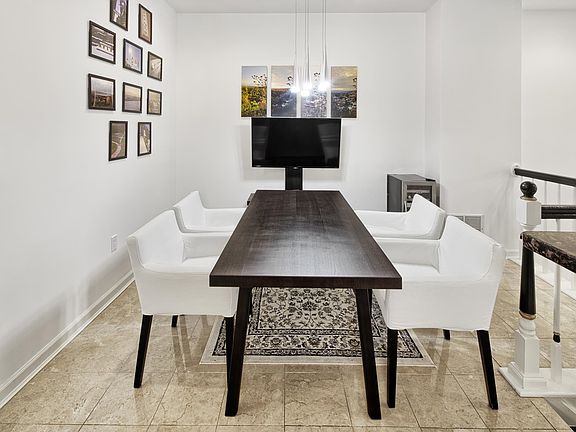 One of only a few master suite style Albany homes. Located on Southernmost row of Jacob's Ferry; hence NYC and park views. Next to guest parking and second pool. Main living area faces South with 12 foot ceilings and large windows; flooded with sunlight. Kitchen features breakfast bar, granite countertops and 42 inch cabinetry. The major appliances are recently upgraded with stainless steel gas stove/oven, microwave, French door refrigerator, dishwasher and washer/dryer. Huge master bedroom with new dark wood floors and large walk-in closet. Plenty of room for an office area and perfect for remote working. The home is connected with fiber optics that can handle multiple high quality video conferences simultaneously. Large master bathroom with double sink and granite counters. Rec room/bedroom with new flooring and half bath on bottom level. This bedroom can double as home office or gym. Parking for two cars; one in garage and one in driveway. 250 volt charging port for fast EV charging. Community features two pools with Jacuzzis, tot lot, waterfront promenade and free shuttle to NY Waterway Ferry. 30 minutes to downtown, 25 minutes to midtown. Steps to 158 bus to NYC. Close to restaurants and shopping. Must see and feel to appreciate!!