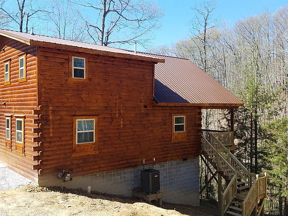 Newly built log home in Cliffview Resort, a gated community in the Red River Gorge area. Five bedrooms, and 3 full baths fully furnished and in an active rental program. Two bedrooms on the main floor each have a Queen bed and full bath attached. 3 bedrooms on the second floor each have 2 twin beds and share one full bath. Fully equipped kitchen, washer and dryer on main floor. Fireplace and TV in main living space. Ready to move in or continue to use as an investment, with some personal use. Large wrap around deck with 8 person hot tub. Fire pit, and part grill on site. Ramp entrance, with first floor setup for be handicap accessible. Built on a private wooded lot with access to a small pond on site. Seller is a licensed Realtor in the state of Kentucky.
