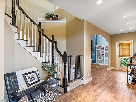 Welcome to this Stunning 5 bed, 5 1/2 bath 2 story Colonial in the Danbury Glen Sub in Hartville, Lake School District. Beautiful wrap around porch with country lighting, wooden swing, and fall decor. When you open the door you will find the tall ceilings and open foyer with winding staircase. The main floor is the office with french doors and lots of windows. The dining room is perfect for many family dinners. The Great Room has vaulted ceilings and also french doors, stone fireplace, and built in shelving. The kitchen has many tall cream cabinets, stainless appliances, island, Quartz counters and subway tile backsplash, many windows that look over the 1 acre fenced backyard. The backyard also has shed, stamped concrete patio, fire pit, benches, and lots of trees for privacy. The main floor has hardwood flooring, mud room off the 3 car garage, another half bath and additional bedroom off the kitchen with walk in closet and full bath. The upstairs is 4 bed, and 3 full baths. Large bedr