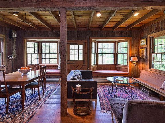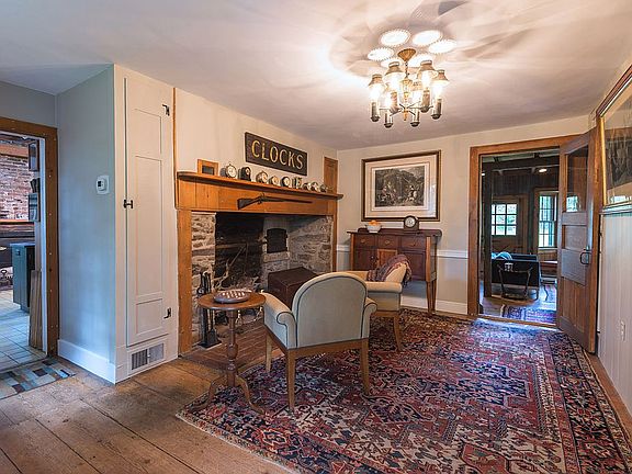 Mulberry Farm, circa 1837, is a farmhouse ideally located on a quite road, just minutes from the Historic Boro of New Hope. A wonderful collaboration of original details and sophisticated updates to accommodate the refined buyer. The property offers two incredible barns and a gorgeous studio/office space adjacent to the home and pond. A sweet covered front porch welcomes one into the home with a massive original stone walk-in fireplace and mantle centered in the keeping room, along with a beautiful built-in corner pine cupboard having a cabinet below and open shelving above. A cozy living room/den with a fireplace and wall of built-in shelving is a pleasant gathering place. The expansive dining room, with two bay windows, exposed beams and a rear door overlooking the pond and studio is perfect for big gatherings and entertaining. The kitchen offers a cathedral ceiling, exposed beams, brick fireplace, a soapstone center island with a work sink, ample cabinetry and an entrance into the sun filled brick floored mud room and side doorway which leads to the driveway for easy access into the kitchen. The main level has two stairways leading up to the second level, a charming powder room having an exposed stone wall, a spacious laundry room/work room and the basement entrance. Many original characteristics of a period home such as pine flooring throughout, 4 working wood burning fireplaces, along with period beams, deep set windows, exposed stone, lots of windows for natural light, all adding character to this vintage farmhouse. The second level provides a large main bedroom with an oversized window having a gorgeous view of the rear yard and pond. A recently renovated full bath has a soaking jetted tub, radiant heated floor, unique tile flooring w/shells embedded in concrete, a glass enclosed shower, a wall of windows and a heated towel rack all create a luxury en-suite bath. A roomy second bedroom has a fireplace, an additional bedroom and a full bath complete the second floor. Two charming bedrooms are on the third level. Adjacent to the home is a stunning two story studio/office having heat & central ac with a cathedral ceiling and French doors leading out onto a 2nd level covered porch. Two very special and enormous barns are offered here. The smaller, hay barn, circa 1875, is ideal for farm animals having two stalls and offers a massive amount of storage on the top level. The second bank barn, was totally rebuilt, in 1998, with added foundation support, is perfect for big gatherings and includes a workshop on the lower level. The adjacent property is in preservation and is protected as a bird sanctuary. The entire property is fenced in and is close to major arteries for commuting into Philadelphia, NY, Princeton and very close to the award winning towns of New Hope and Lambertville, NJ.