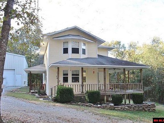 Privacy can be found just off the paved road in the beautiful Ozark Mountains. Sweet homestead located in Marion County on mostly wooded 3.20 Acres m/l, private yet near shopping, schools and medical. Beautiful 2 level country home with old fashioned covered porch that wraps around. 3 bedrooms, 2.5 baths. Spacious kitchen with wood cabinets, newer appliances, lots of counter space. Breakfast room/eat in kitchen open to the kitchen area. The living room has walk in bay window that allows for lots of light and good views of the woods. All 3 bedrooms on upper level with private bath in master and a shared hall bath. 30’x40’ shop/man cave is insulated, concrete floor and has electric with 2 powered doors. The shop has 2nd floor storage/work area with wood stove. Fenced chicken coop. Great place to grow!