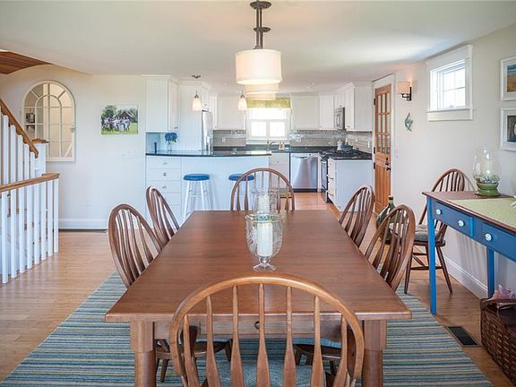 BEACH FRONT! Totally renovated 3 story cape with separate 2 car garage with 2nd floor workshop with view. Renovations done with emphasis on quality and maximizing water views from all 3 floors. Living room, dining area and fully updated kitchen have bamboo floors and open up to a large deck with views of the Beach. Two bedrooms and a den with a whirlpool bath complete the 1st level, Master bedroom with a large tile shower and beautiful views on second level next to a fully equipped media center with Propane gas line for future fireplace! Lower level family room with room for office and exercise room that leads to a fully enclosed sunroom to enjoy the breezes from the beach Right out the back door is a Large Landscaped Stone Patio for entertaining amid flower gardens... OR Launch your boat! kayaking, paddleboard, swimming, fishing, or just spend the day on the beach!! Minutes to Downtown NEWPORT and/Or BRISTOL, 45 Mins. to PROVIDENCE, 1 hour to 1 1/2 to BOSTON 15 MINUTES TO CARNEGIE ABBEY.