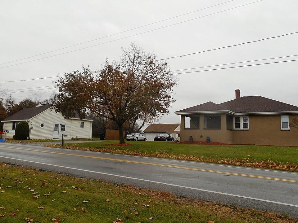 The property consists of 3 tax account #s. 2 are vacant lots zoned industrial one on each side of the middle parcel which is 2 rented houses and 2 rented modern 3 car garages all in excellent condition. The houses are a 2 bedroom ranch rented for $700 plus utilities and a 3 bedroom ranch rented for $900 plus utilities. The two 3 car garages bring in $1800 per year income. New windows on both,new roof on 1. This would be a great spot to build a building for your business or a mini storage on one of the lots and collect the rent from the houses and garages. Backs up to the off ramp 390 for signage and exposure.