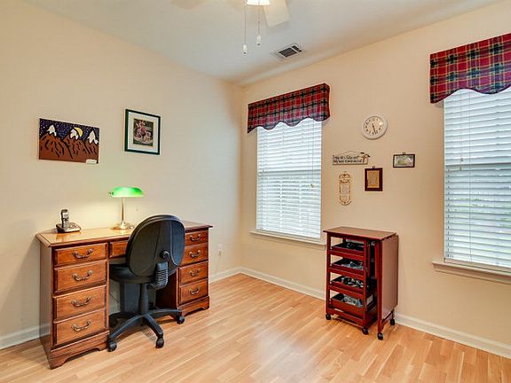 Better than new! Split floor plan with brand new solid surface floors in foyer, living room, dining, kitchen and hallways. Ceramic tile in laundry and bathrooms. ADT Security System. Kitchen has tile backsplash and Corian countertops. Vaulted ceilings, crown molding, and 2 blinds throughout. Cozy natural gas fireplace in living room. Master suite has a large walk-in closet, separate water closet, brand new spa shower and marble double vanity. The house also has two additional nice sized bedrooms, a full-sized hall bathroom with a separate toilet room and a walk-in laundry room. Unbelievably landscaped with front and back sprinklers & accent lighting, rubber mulch, 10x10 powered shed, privacy fence and termite bait system. Lifetime warranty on gutters. Screened-in back porch. Neighborhood amenities include multi-use walking trail, park with picnic area and playground.