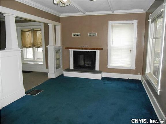 This 2 story city home just needs you and a little tender loving & care. The home features 3 bedrooms, one bath. There is a sun porch off the master bedroom. The large living room with a working fireplace. This home has some has great woodwork, and built in bookshelves. There is a formal dining room and a den/computer room. The kitchen is bright & loaded with cupboards. There is also a front porch to enjoy. The Garage is in a shared driveway, with access from Franklin Street. Garage has overhead storage and cement floor. All this and located with in walking distance to Thompson park.