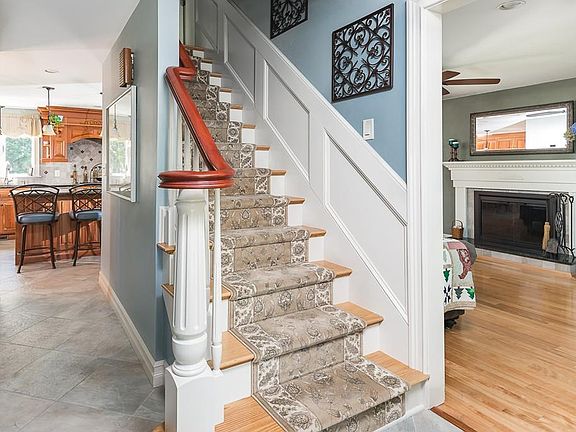This lovely three bedroom, two and a half bath, turnkey colonial is ready for you to make it your home! Updated custom kitchen with cherry, soft close cabinets,under cabinet lighting, island seating and large pantry cabinets for storage. Lighted corner cupboard, custom wainscoting and ceiling medallion in dining room. Fire placed living room with Red Birch hardwood floors throughout the family, dining and living rooms. Elegant staircase with cherry rail and wainscoting. Closet organizers in all bedroom closets and updated baths throughout. Finished family room in basement for extra living space with windows and walk out access to the backyard. Updates include: energy efficient Anderson 400 tilt in windows, 200 amp electrical service, exterior paint, new driveway, granite front steps, roof, garage doors and a larger two level composite deck for entertaining or for simply enjoying your beautifully landscaped backyard with multiple mulched beds, perennial shrubs, flowers and bulbs!