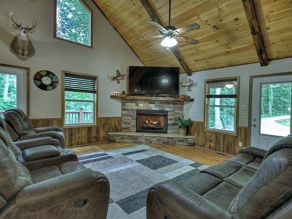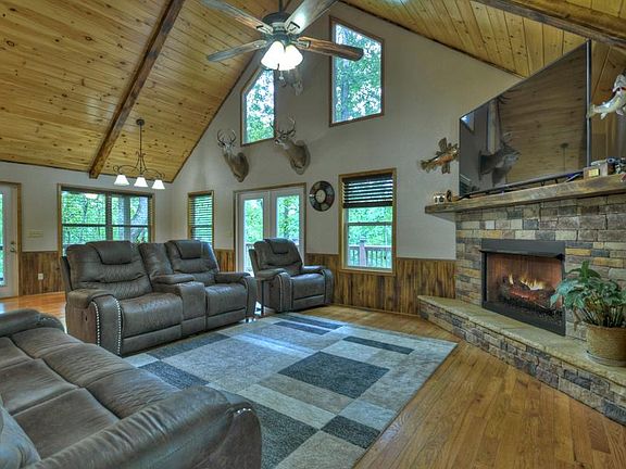 AGGRESSIVE PRICE REDUCTION! Acreage, privacy & a home with an abundance of space...ALL WITHIN 4 MILES OF DOWNTOWN BLUE RIDGE! This home offers a low maintenance concrete board exterior, has been very well maintained, circular driveway for maximum parking, a 2 car carport slab already poured, & 11 acres of complete, non-restricted privacy to do whatever you've been dreaming of doing in the mountains! Rustic finishes are all thru out the home such as a corner, rock fireplace, custom kitchen cabinetry, granite countertops, tongue & groove ceiling w wood beams; comfortable living space throughout in regards to bedrooms & baths; full finished basement features a bonus room; master bedrooms offers a large bathroom w walk-in tile shower & private balcony. Plenty of outdoor entertaining can be done on the wrap around deck!