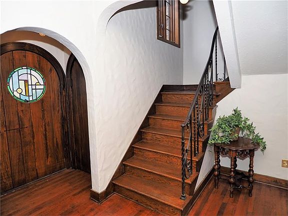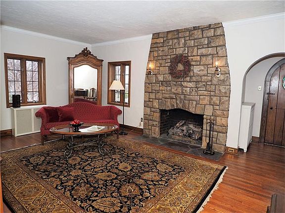 Stunning Stone Tudor with loads of curb appeal Beautiful hardwood floors, archways, crown molding Living Room with grand stone fireplace, stairway with wrought iron railings Charming den with stone walls Bright white kitchen features stainless appliances, hardwood floor and separate desk area Bright & beautiful 1st floor Family Room with beamed ceiling & French doors to oversized patio with beautifully detailed iron railings Master has cathedral ceiling, huge arched window and attached spacious & bright white bath Beautifully manicured flat yard