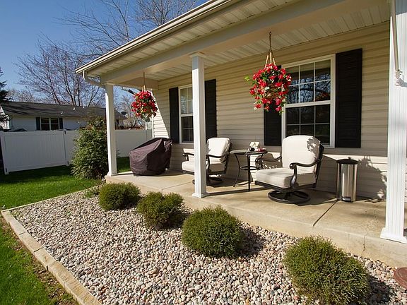 From the Moment you pull up to this home you will fall in love! Large covered front porch will greet you into an incredible interior! The home shows like a display! Vaulted open floor plan with newer laminate floors, plant shelves, incredible paint colors, granite counter tops, new cabinets and a pantry in the lovely kitchen! Master bdrm has w/i closet and walks out to huge 40x12 stained patio with Sunsetter awning, plus huge vinyl fenced private corner lot! Master bath has newer extra large shower-Main Floor Laundry-There is also a newer service door, opener and 2 car garage door as well-The lot has been well manicured , aerated, looks like a park!