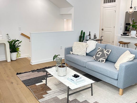 End Unit on the Beltline Trail in beautiful Grant Park! Home is filled with natural light, beautiful tall windows, modern interior with designer upgrades. 2 BR/2BA with a spacious master on main has a large WIC and luxurious bath w/frameless shower & double vanity. Lower level bedroom can be used as an Office/Exercise Room. Quartz countertops in kitchen, hardwood floors and a large balcony for outdoor living and entertainment. Washer/Dryer/Refrigerator included and blinds throughout the home. Across the street from restaurants, shops, breweries at the Beacon!
