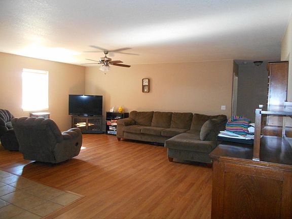 Lovely home on fenced double lot. Nice open floor plan, has new carpet in 2 bedrooms and laminate wood floors in living area and ceramic tile in kitchen. Backyard has 2 fruit trees (apple & pear), fire pit, nice patio with gazebo. Basketball goal, stove, refrigerator, microwave, dishwasher convey. Refrigerator in garage does not convey.