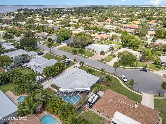 ****Sellers are motivated and will contribute to buyers closing costs!****Welcome to Rio Mar in Indialantic! Located on a quiet Cul-De-Sac with no through traffic & space to park a boat or RV, this beautiful pool home has an open floor plan with tile floors in all of the main living areas & crown molding throughout. Many upgrades including a new roof and pool screen in 2019 and a new water heater in 2022. Updated double pane windows provide lots of natural light throughout the home. An open concept kitchen features granite countertops, a new dishwasher (2021), a built-in Dacor fridge (2022), Philips Hue recessed lighting, and Whirlpool stainless steel appliances. The spacious laundry room has a sink with a countertop & the new (2022) front loading washer & dryer convey the sale. In the primary suite, there is tons of storage space with a walk-in & a reach-in closet and a lovely bathroom with a large walk-in shower. The finished garage has an epoxy floor, a window A/C unit, & Chamberlain Smart opener (new 2022), making it perfect for a workshop. The guest bath conveniently located just off the kitchen & sitting area just between the two guest bedrooms, and most of the interior was recently re-painted with accent walls. There is also a GE Powermark electrical panel and an Ecobee smart thermostat. This Great Beachside location is centrally located between the Eau Gallie and Melbourne Causeways, so traveling the mainland is a snap! Also just minutes to the beach, shopping, dining & schools!