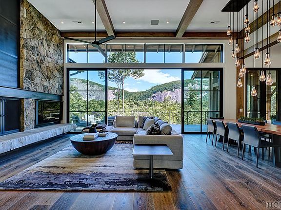Sleek mountain estate in highly desirable Lonesome Valley! This brand new 6 BR, 4 BA, 2 Half BA masterpiece designed by award-winning Platt Architecture features a modernized refinement of Southern Appalachian style. Offered furnished & move-in ready, don't wait to build - your dream home is ready for you now! This private enclave is on a 3.6+ acre hilltop homesite where this modern farmhouse maximizes all elements of nature & panoramic mountain views. You're drawn to site lines extending through the pivoting front door, across the great room, and out to the deck with iconic views of Cow Rock & Laurel Knob. The main level is heightened by floor-to-ceiling windows w/sliding doors, grand fireplace featuring floating hearth, and Lutron shades. Wide-plank oak floors lead into the dining area crowned by a hand-crafted chandelier from Allison Berger Glassworks. The kitchen is tricked out with Cambria counters, touch-latch cabinets, The Galley Sink, luxury appliances, & prep-kitchen w/pantry full of appliances & storage. Walls of accordion windows open to bar seating on the screened deck & a BBQ kitchen. A custom wine bar completes the symphony of textures in the space. Then down the hall is a powder room w/Wonderwall backsplash & Kelly Wearstler lighting. The master suite has 2 owners' closets w/full laundry & cozy workout area, master BA with Penhaglion bathtub, indoor & outdoor showers, and amazing views! The lower level has 2 ensuite guest rooms w/sliding doors leading to the courtyard chimney terrace, and the left wing has a private 2 BR guest suite + bunk room & full BA. The right wing has a family room opening to a screened deck, a half BA, kitchenette, washer/dryer, & outdoor shower. Other features include: Savant smart home system, generator, A/V package, Samsung Smart TVs, 2-car garage, golf cart garage, high speed internet, and designer furniture, dcor, & fixtures. Why wait 2 years or more to build when the perfect home is ready for you today? Let's go see it!