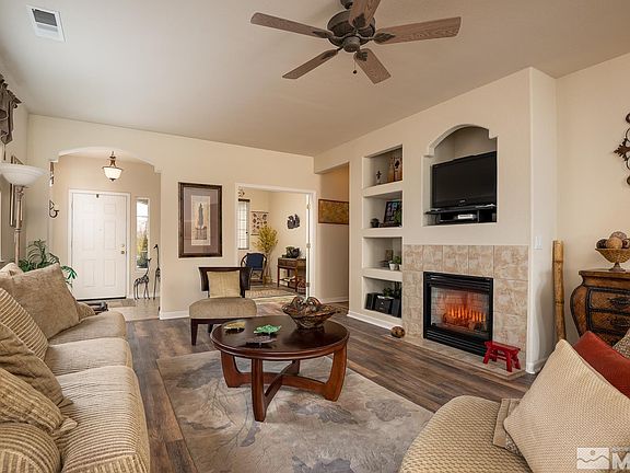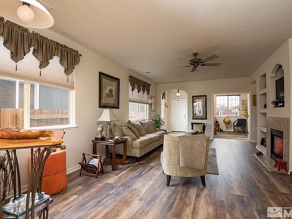 Immaculately furnished turnkey home! Located on the 3rd fairway on the Dayton Valley golf course with mountain views. Spacious 3 bedrooms, 2 bath & office/den. The kitchen has an Island along with plenty of cabinet space, all appliances are included. The primary bedroom has a ceiling fan, walk-in closet, double sinks & shower stall. Laminate wood grain flooring throughout the living area. Beautifully landscaped front & back, relax and enjoy the views from your peaceful patio., * Seller will provide a $5000.00 credit towards Buyers closing cost. See Doc. Icon for the Furniture Inventory that comes with the home. Seller will need a 1-2 week rent back, please inquire with listing agent prior to submitting an offer. Buyers & Buyer's Agent to verify accuracy of all MLS information.