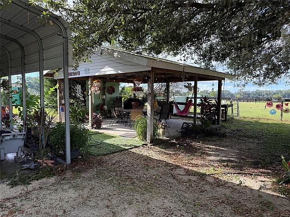 Beautiful Started Farm, this property has 10 acres partially fenced, divided into 8paddocks , 60' round pen 100x200 riding arena, tack room ,storage room, fly system, 4 outdoor shelter, equipment shed new well ,outdoor BBQ Gazebo and also has 2 barns with 8 stalls each, so altogether you can have 16 horses, one of the barns has a bathroom, it has an office. The main living space is a 2002 mobile home, that has been well taken care off. The roof was recently replaced. This property not just has the look but also the location. Near t 1-75 close to schools the florida horse park about 5 minutes and easy access to The Villages .