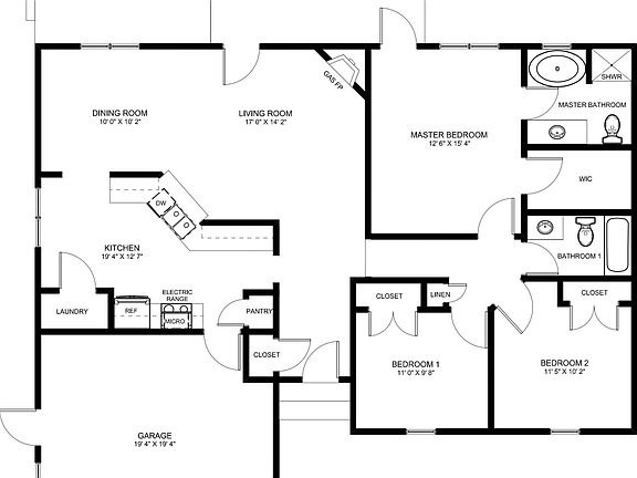 - Rooms: Dining Room, Kitchen, Bedroom 2, Bedroom 3, Eating Space, Master Bedroom, Garage, Living Room, Foyer