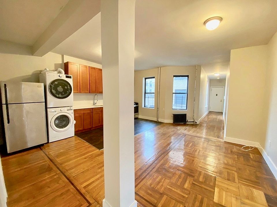NO FEE! Large 3 Bed Apt with Washer and Dryer In Unit! **3rd Floor Walk-Up** Apartment Features: - Large living room 15.9 ft by 17.5 ft - Renovated kitchen kitchen - Bedroom 1: 11.5 ft by 12.6 ft (has closet) - Bedroom 2: 13.8 ft by 10.3 ft (has closet) - Bedroom 3: 9 ft by 11.2 ft (has closet) - Modern bathroom - Heat and hot water included - Hardwood floors throughout This apartment is around the corner to Crunch gym. You are walking distance to 3.4 trains. You are next to restaurants, coffee shops, grocery stores, and so much more Crown Heights has to offer.