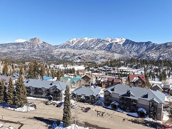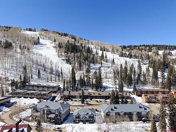 Discover a charming third (top) floor condo just steps from the slopes at Purgatory Resort. Enjoy slopeside mountain views from two private balconies that capture the beauty of your surroundings. Inside, the one-bedroom layout features two queen beds and a queen sleeper sofa in the living area, ensuring comfortable accommodation for your stay. The fully equipped kitchen, complete with modern appliances makes meal preparation a delight. Cozy up by the wood-burning fireplace—firewood is provided by the HOA—to enhance the mountain ambiance. Additional amenities include a smart TV for your entertainment, gas grill for cooking in the Summer months, ski locker on the first floor, and one outdoor parking space. It is being sold fully furnished and short term rentals are allowed! Property is part of the DMMA (Durango Mountain Master Association) so owners get access to a heated year-round pool, hot tub, fitness center, tennis courts, game room, and an owners only lounge and restaurant. Embrace the perfect blend of relaxation and adventure at this inviting mountain retreat.