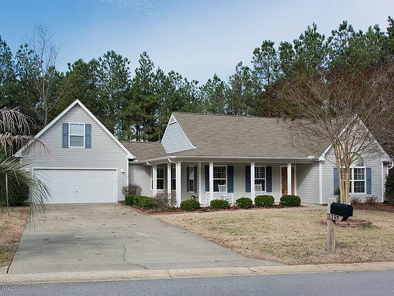 Beautifully maintained 4 bedroom, 2 bath home. Approx 2100sf situated on a generous .68 of an acre lot. Curb appeal! Relax on your wrap-around front porch. Large great room with cathedral ceilings and laminate hardwoods. Updated bath with ceramic tile and granite countertops. Spacious eat-in kitchen. Master suite offers a walk-in closet and spa-like bath with a double vanity, jetted tub, seperate shower, and heated ventilation system. Looking for a man cave or just extra storage? 12x16 storage shed has electricity and even its own front porch. Playhouse has electricity too! Enjoy your covered patio overlooking the large backyard with mature landscaping. Zoned for desirable Lexington One Schools.