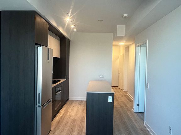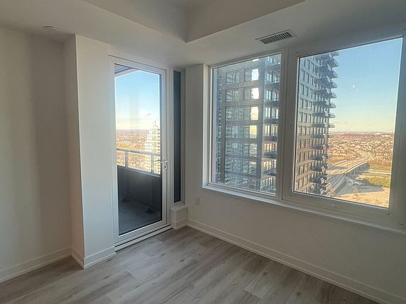 A remarkable opportunity in Mississauga's most dynamic new master-planned community! This brand-new 1 Bed + Den suite in the highly anticipated Square One District by Daniels & Oxford is available immediately. Enjoy modern urban living in an unbeatable central location. Featuring 609sqft of efficient interior space + a 43sqft balcony, the suite boasts a thoughtfully designed layout with contemporary custom kitchen cabinetry, integrated under-cabinet lighting, stainless steel appliances, built-in hood range, hidden dishwasher, generous cabinet space with soft-close hardware. The spa-like bathroom includes a sleek vanity with an integrated basin with floor-to-ceiling tile finishes. Large windows fill the living area with natural light, showcasing unobstructed North East views of Mississauga. A spacious den provides the perfect home office or guest area. Residents enjoy exceptional amenities, including a fitness centre with half-court basketball and rock climbing wall, co-working zone, community garden, lounge with an outdoor terrace, dining studio with a catering kitchen, and extensive indoor/outdoor kids zones. Located steps from Square One, Sheridan College, parks, cafes, and transit, with easy access to Hwy 403, 401, 407, MiWay, and GO Transit. Welcome to the ultimate blend of convenience, comfort, and contemporary living!