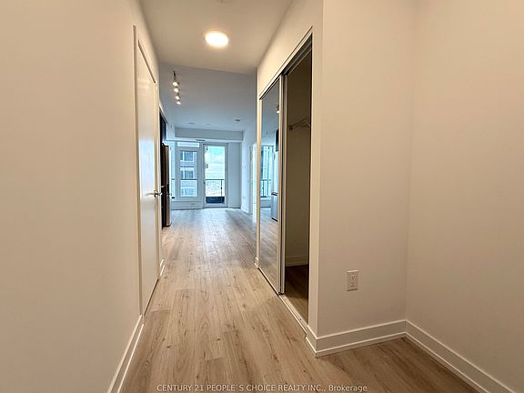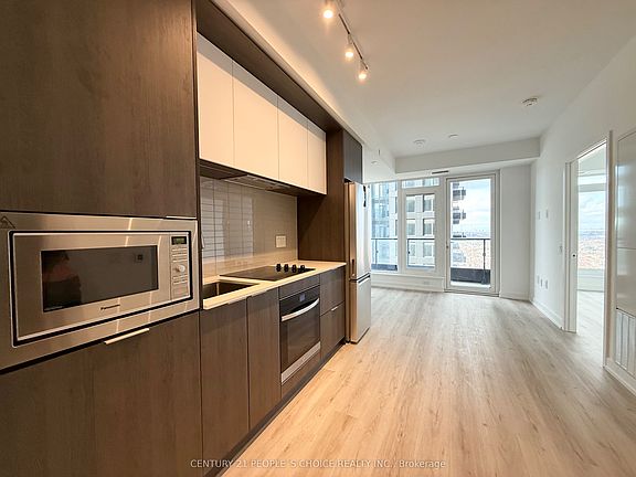 Welcome to this brand-new 1-bedroom Daniels condo in Square One. The unit comes with one underground parking space and a locker, offering contemporary finishes and unbeatable convenience. Enjoy 9 ft ceilings, warm laminate flooring, modern baseboards/casings, and mirrored closet doors. The stylish kitchen impresses with custom cabinetry, under-cabinet lighting, quartz countertops, tile backsplash, soft-close features, and 24" European-style appliances. The elegant big size bathroom includes an integrated vanity and floor-to-ceiling tiles. Additional perks: stacked front-load washer/dryer, individual hydro metering, Decora switches, and pre-wired cable/internet. Residents enjoy exceptional amenities including a 24/7 concierge, state-of-the-art fitness centre with basketball half-court and climbing wall, co-working lounge, children's play areas, garden plots, and a social terrace. Steps from Square One, Sheridan College, parks, cafes, and major transit routes, with quick access to highways and the upcoming LRT.