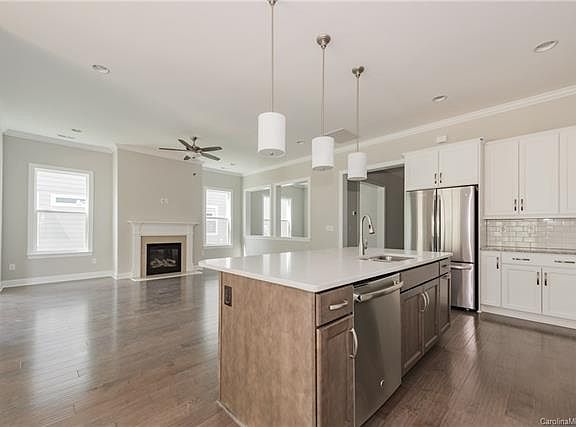 Our most popular floorplan features beautiful cabinets in maple and glazier with crown, decorative hardware and light rail. Quartz countertops, decorative tile backsplash and stainless steel appliances throughout this designer kitchen. We've upgraded the trim, agreeable gray paint and topped it all off with additional lighting to make this home move in ready. Home also includes an attractive landscaping package with irrigation!