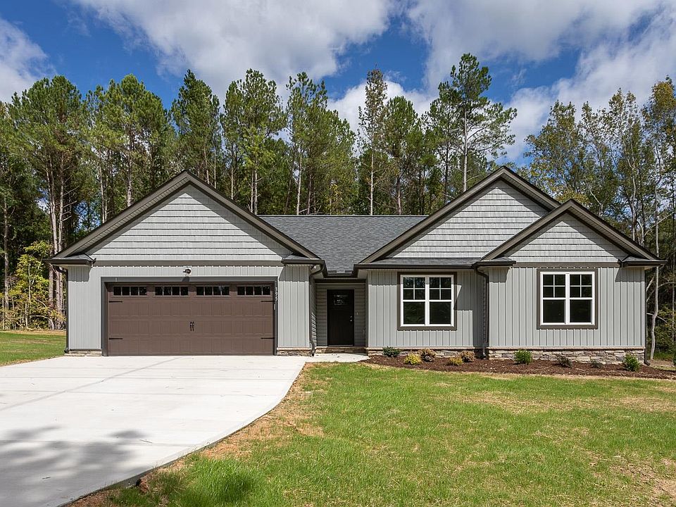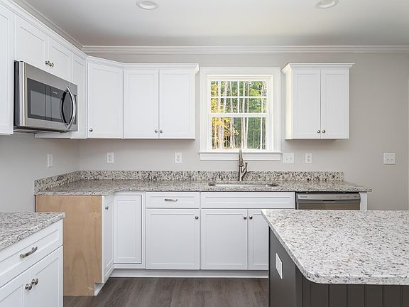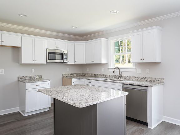 CUSTOM BUILT RANCH PLAN! 100% USDA Financing Available! Luxury Hardwood Style Flooring Thru Main Living! Kit: "White Ornamental" Granite Counter Tops, Custom White Cabs w/Crown Trim, Custom "Urbane Bronze" Stained Center Island w/Breakfast Bar, SS Appliances Incl Smooth Top Range, Microwave & Dishwasher, Pantry! Open to Casual Dining! Master: Plush Carpet & 2 Windows! Master Bath: 12x24 Tile Flooring, Custom Stained Cabinets, Dual Vanity w/White Cultured Marble & Rectangular Bowl Sinks, Walk in Shower w/Glass Enclosure, Linen Closet & Walk in Closet! Family Room: HWD Style Flooring, White Gloss Tile Surround Fireplace w/Custom Stained Mantle & Shiplap Trim!