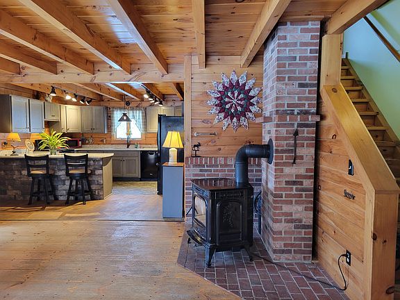 This beautiful log home offers sturdy construction and great location surrounded by fields and woods on a year-round paved road. Open kitchen-dining, master bed w/ en suite bath, laundry, pantry closet and half bath downstairs, 2 bedrooms and full bath upstairs, Welcoming front porch, spacious back deck perfect for grilling, dining and entertaining. Full basement, detached oversize 2 car garage. Automatic backup generator, riding mower, snow blower, many extras and furnishings included in this extraordinary home. Easy commute to Augusta or Farmington. See it soon!